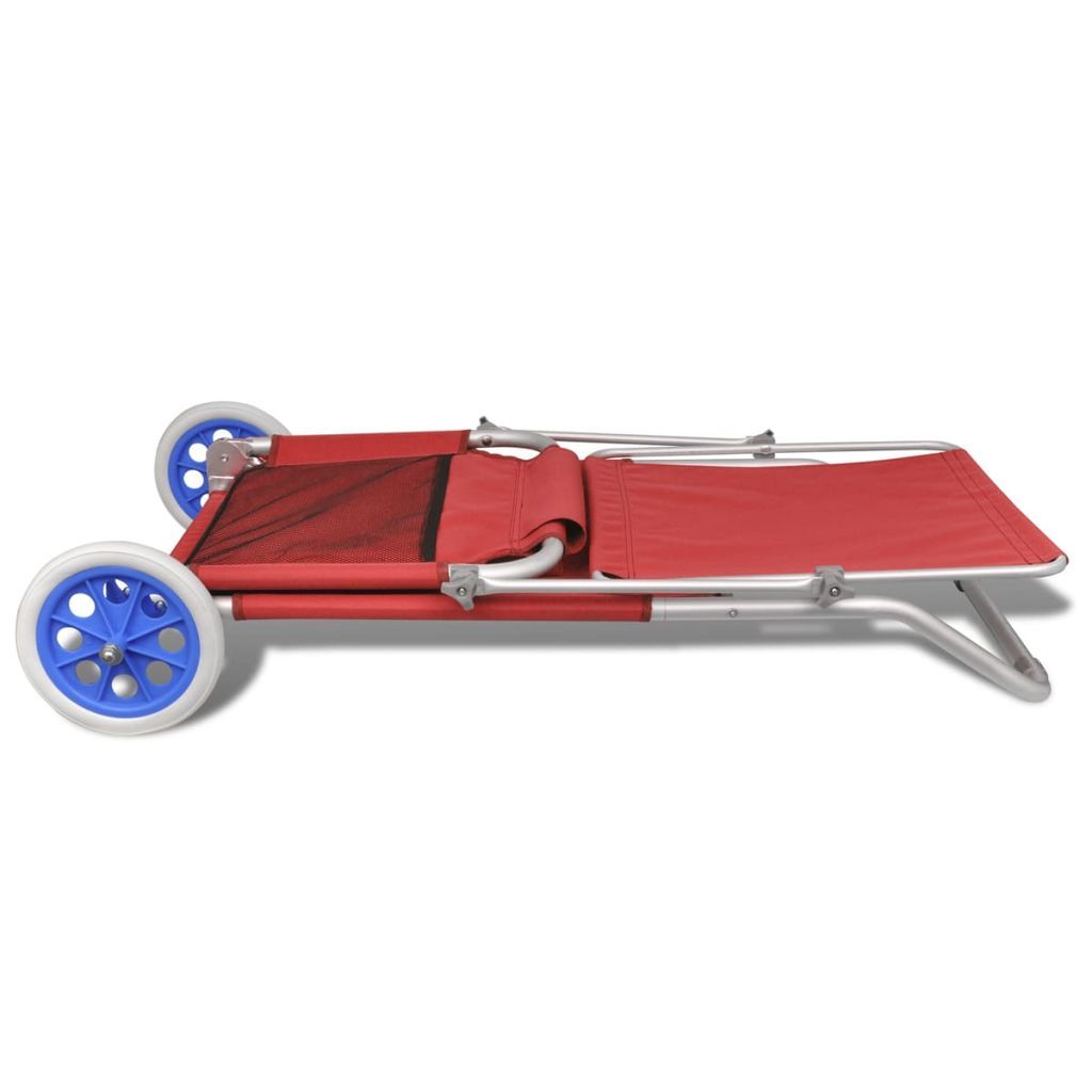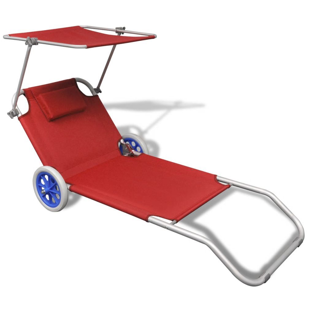 Folding Sun Lounger with Canopy and Wheels Aluminium Red Folding Sun Lounger with Canopy and Wheels Aluminium Red Folding Sun Lounger with Canopy and Wheels Aluminium Red