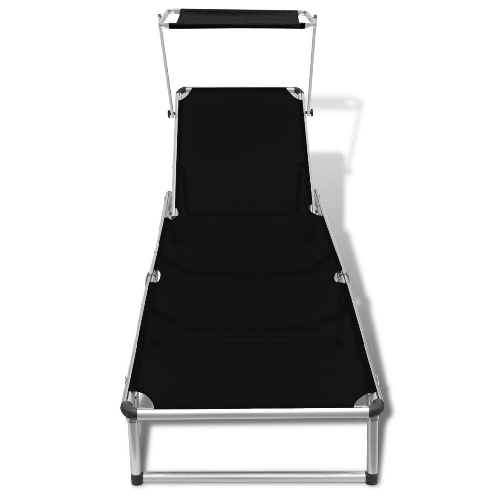 Folding Sun Lounger with Roof Aluminium and Textilene Black Folding Sun Lounger with Roof Aluminium and Textilene Black Folding Sun Lounger with Roof Aluminium and Textilene Black