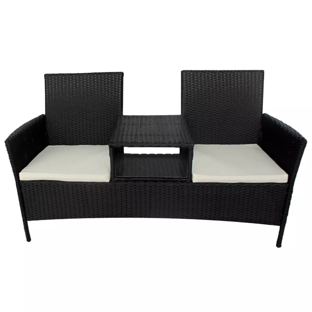 2-Seater Garden Sofa with Tea Table Poly Rattan Black 2-Seater Garden Sofa with Tea Table Poly Rattan Black 2-Seater Garden Sofa with Tea Table Poly Rattan Black