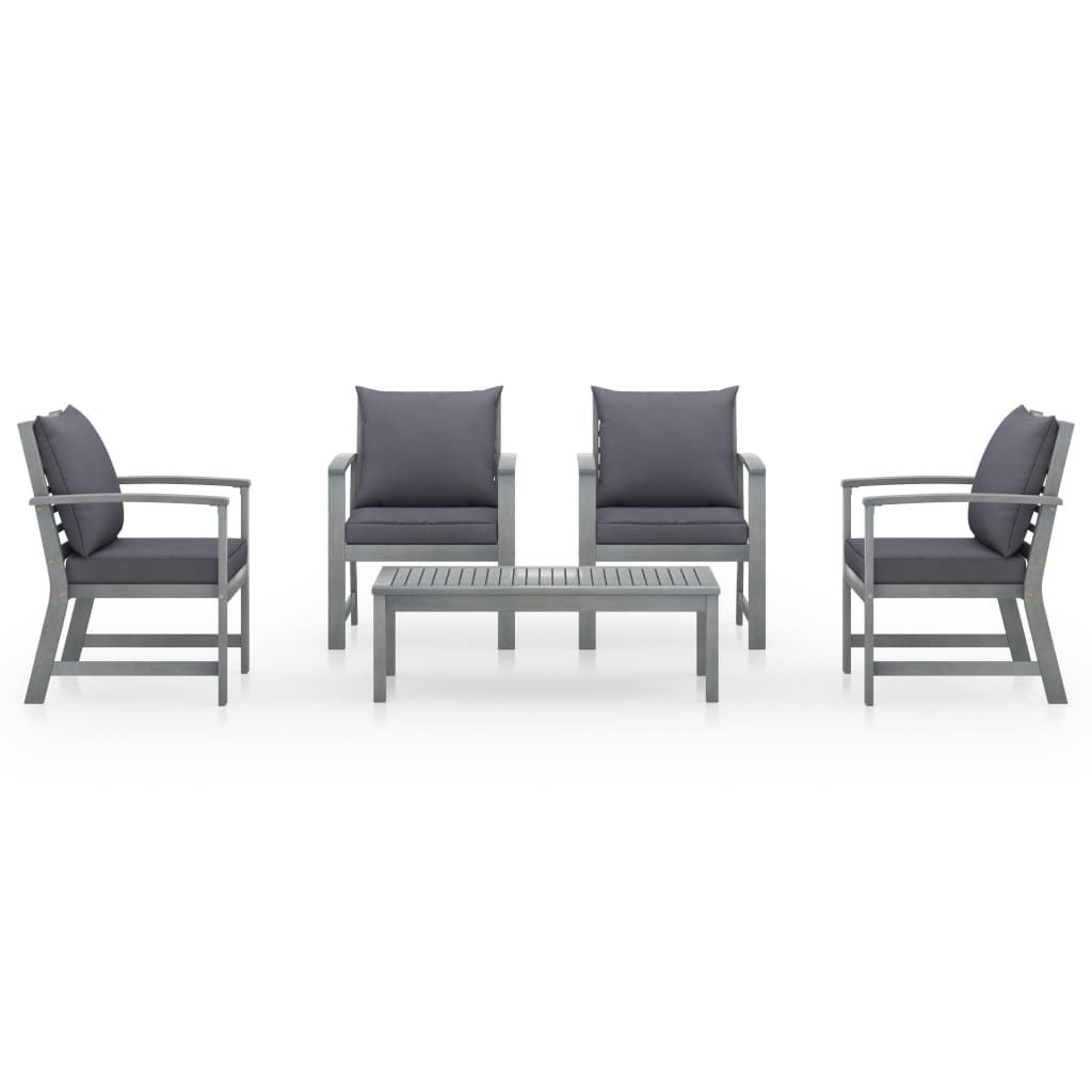 5 Piece Garden Lounge Set with Cushion Solid Acacia Wood Gray 5 Piece Garden Lounge Set with Cushion Solid Acacia Wood Gray 5 Piece Garden Lounge Set with Cushion Solid Acacia Wood Gray