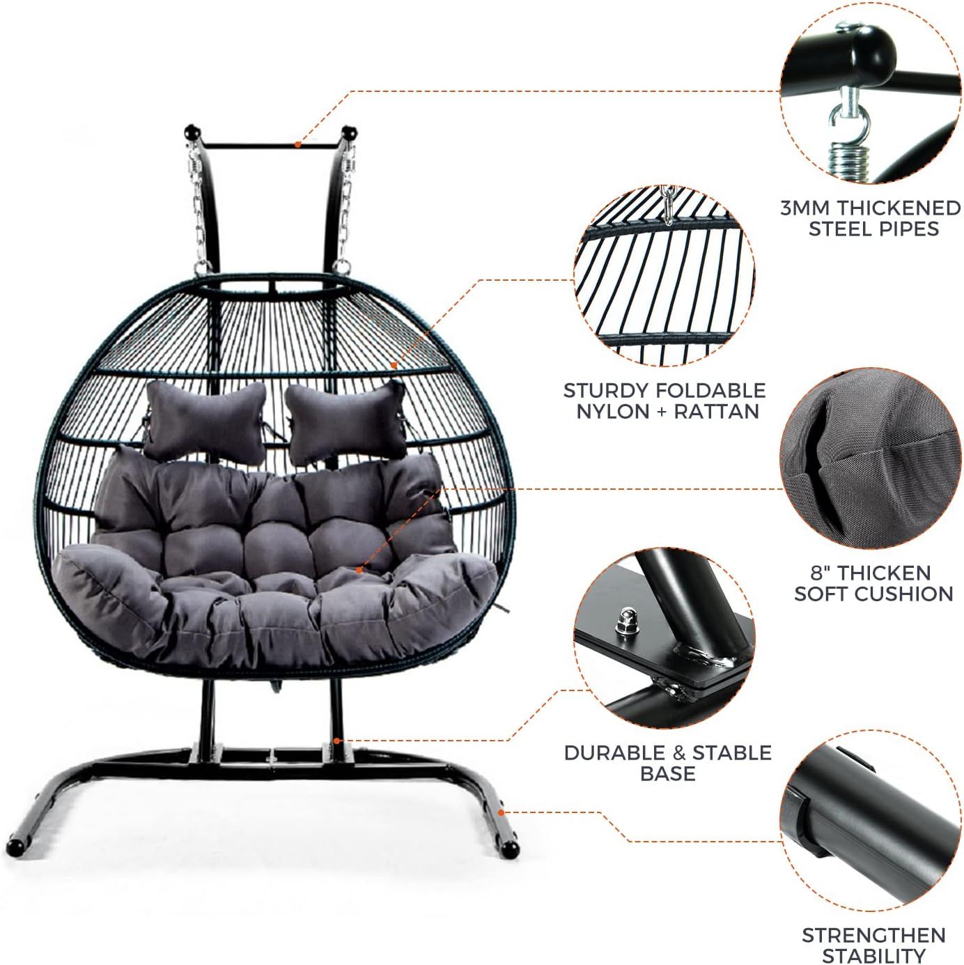1.Compact & Portable :This extra-large wicker swing chair folds easily for compact storage and transport. Its sturdy L-shaped steel stand features non-slip pads for reliable stability on various surfaces. When not in use, it conveniently fits in closets or garages.