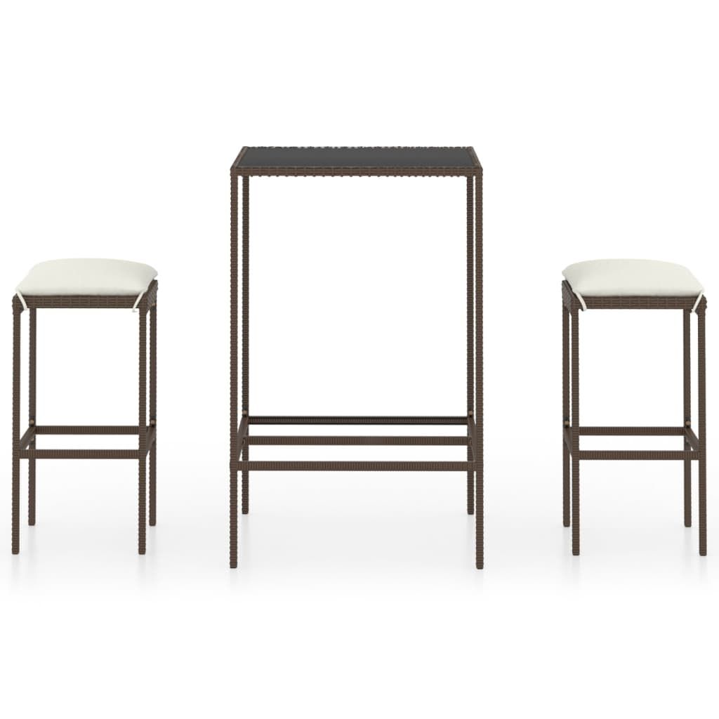 3 Piece Patio Bar Set with Cushions Poly Rattan Brown 3 Piece Patio Bar Set with Cushions Poly Rattan Brown 3 Piece Patio Bar Set with Cushions Poly Rattan Brown