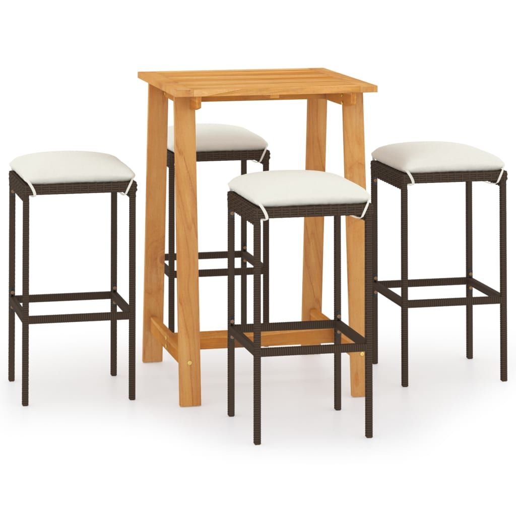 5 Piece Patio Bar Set with Cushions Brown 5 Piece Patio Bar Set with Cushions Brown 5 Piece Patio Bar Set with Cushions Brown