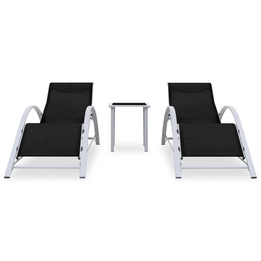 Sun Loungers 2 pcs with Table Aluminum Black Sun Loungers 2 pcs with Table Aluminum Black Sun Loungers 2 pcs with Table Aluminum Black