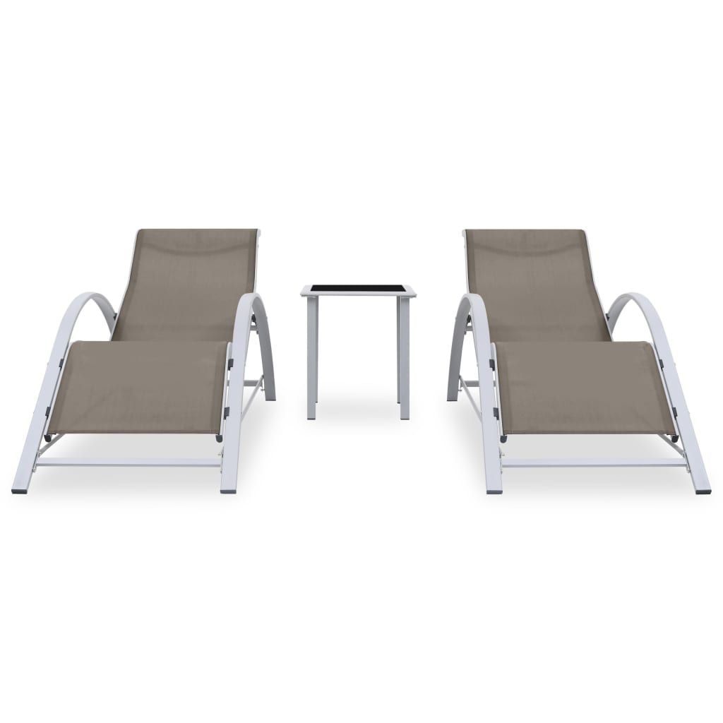 Sun Loungers 2 pcs with Table Aluminum Taupe Sun Loungers 2 pcs with Table Aluminum Taupe Sun Loungers 2 pcs with Table Aluminum Taupe