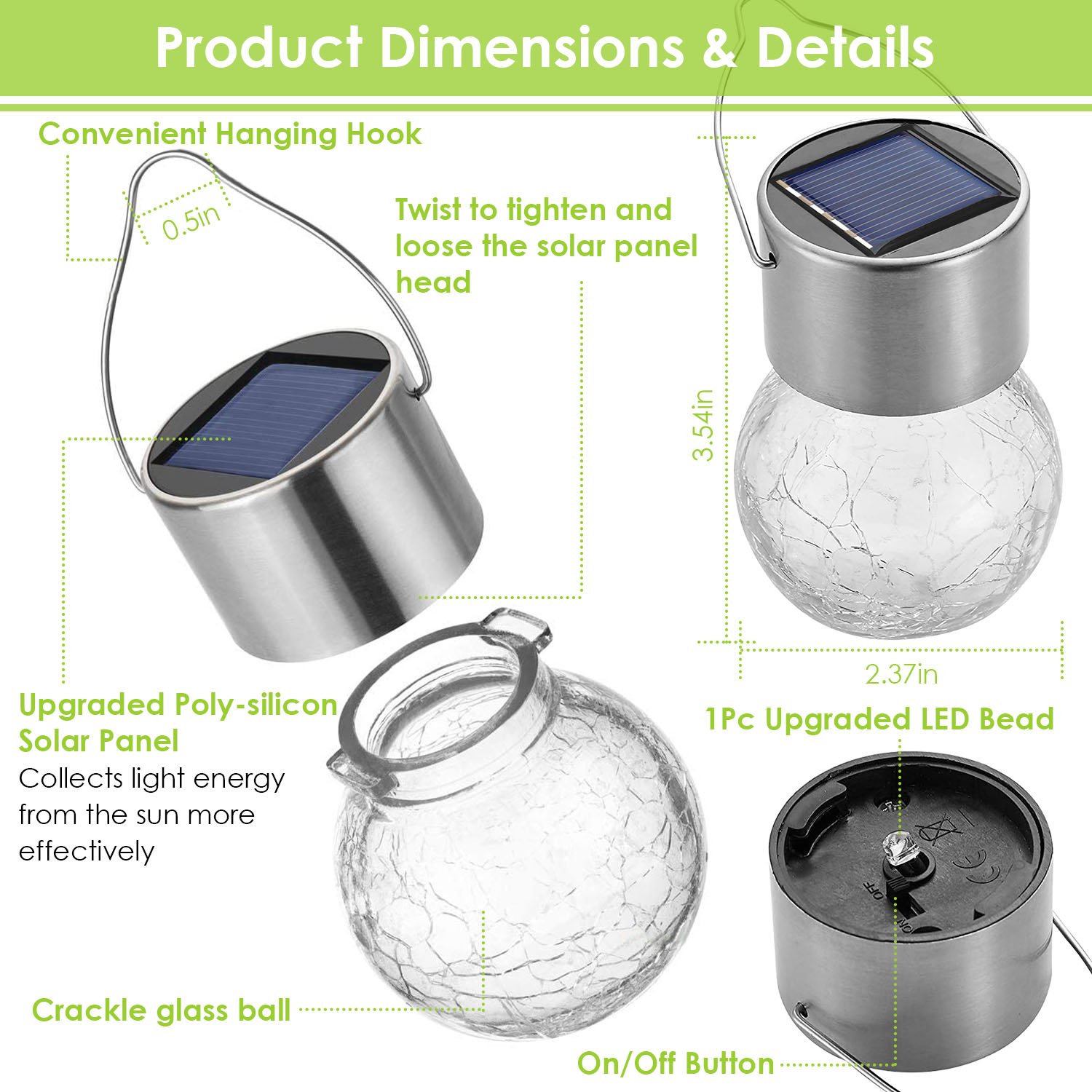 Home > 4Pack Solar Decorative Waterproof Garden Lanterns Outdoor Crystal Hanging Ball Lights Crackle Glass Ball Lights for Tree Patio Holiday Party