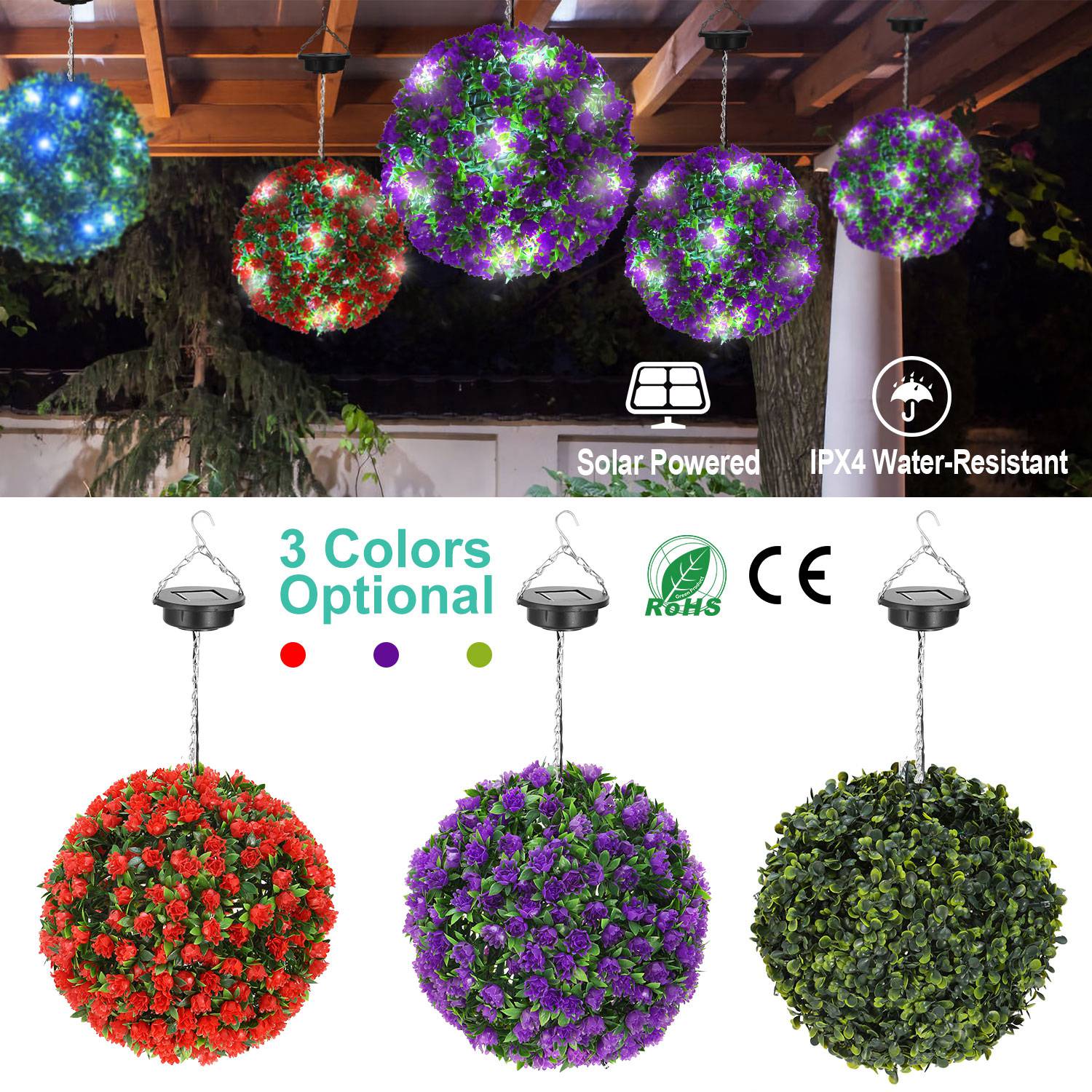 Home > Solar Powered Topiary Ball 20 LED Lights Artificial Rose Flower Garden Hanging Light Ball IPX4 Water-Resistant Decorative Lighting for Home Garden Fen