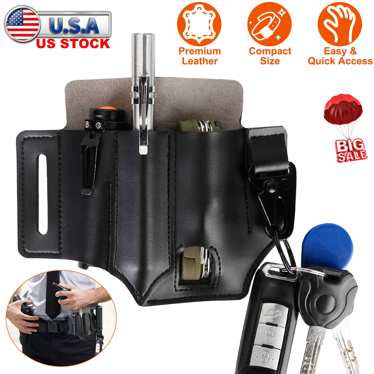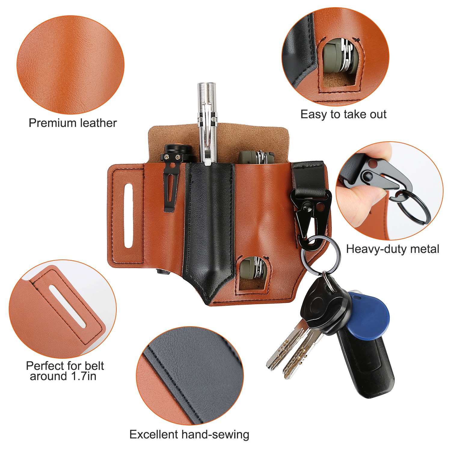Multi-tool Sheath for Belt Leather EDC Pocket Organizer for Men EDC Leather Pouch Flashlight Sheath