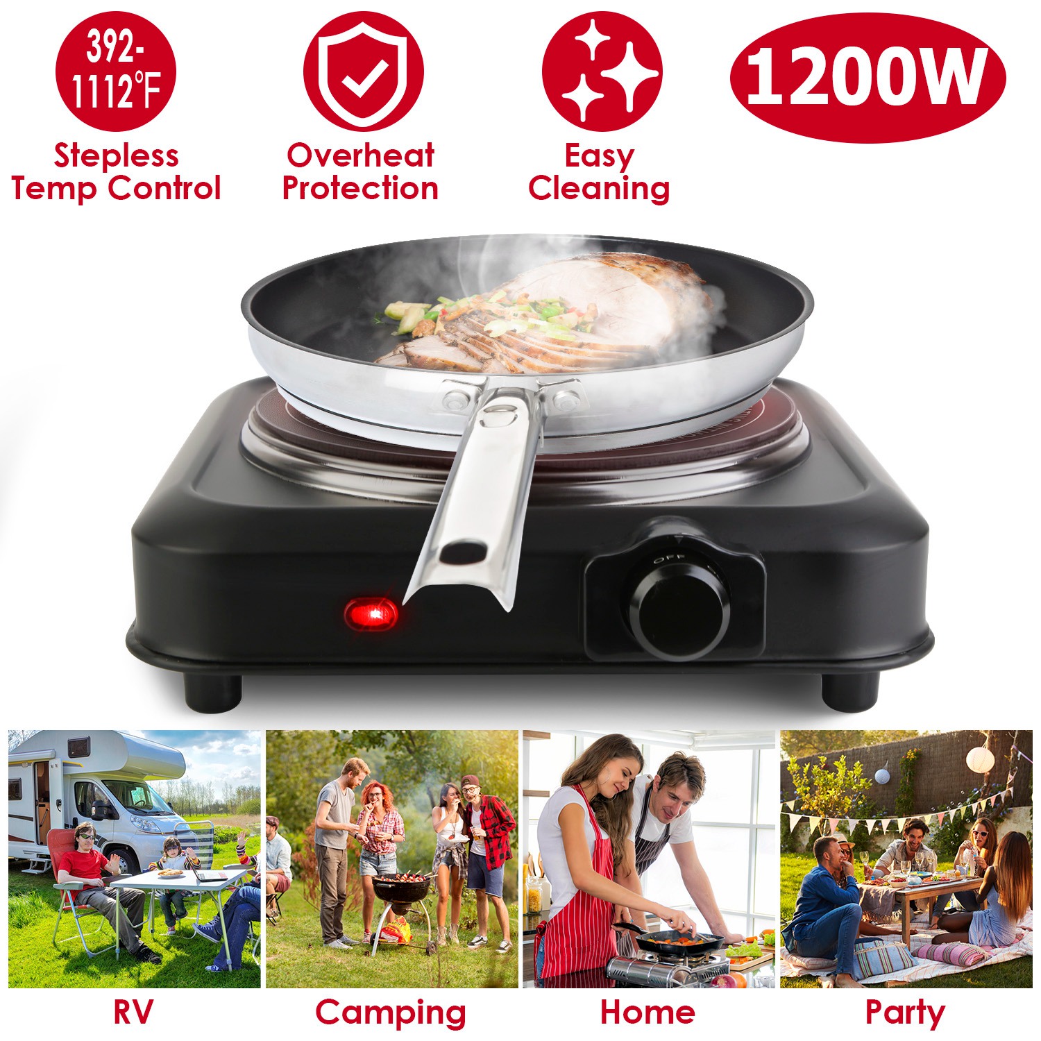 Home > 1200W Electric Infrared Single Burner Portable Heating Hot Plate Stove Countertop RV Hotplate with 7.5” Glass Cooktop Stepless Temperature Adjustments
