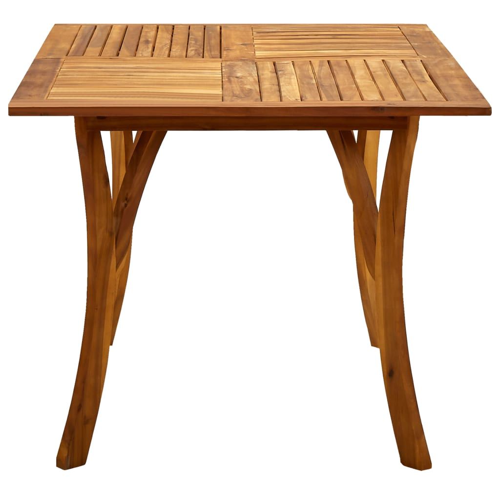 This patio table is made of solid acacia wood, a hardwood with dense grains. The beautifully-designed dining table is stable, durable and also eye-catching. The exquisite craftsmanship and beautiful wood grains make every piece slightly different from the next. The oil-finished surface makes the table easy to clean with a damp cloth. Additionally, the curved legs contribute to its stylish design.