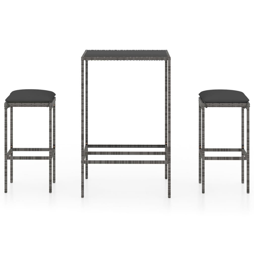 3 Piece Patio Bar Set with Cushions Poly Rattan Gray 3 Piece Patio Bar Set with Cushions Poly Rattan Gray 3 Piece Patio Bar Set with Cushions Poly Rattan Gray
