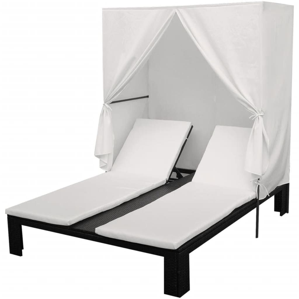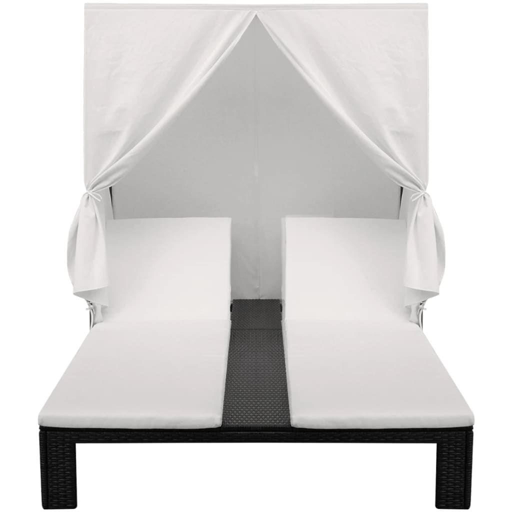 Double Sun Lounger with Curtain Poly Rattan Black Double Sun Lounger with Curtain Poly Rattan Black Double Sun Lounger with Curtain Poly Rattan Black