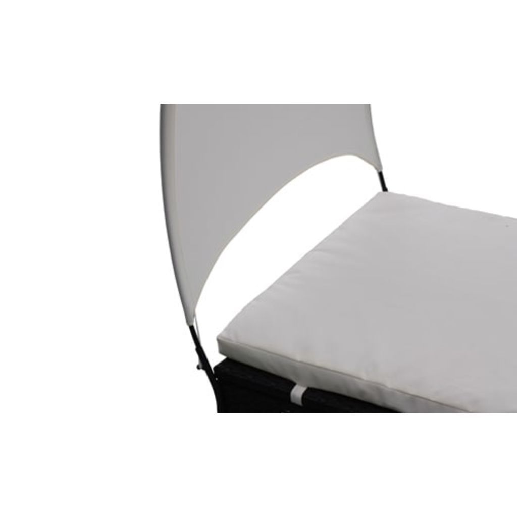 This material is completely water - and weather-proof, easy to clean and above all environmentally friendly, this way it stays looking good all year round without being damaged. The frame is made of high-quality steel. The umbrella doesn’t only provide for shade but also gives this lounge bed a unique appearance. The included cover of the cushions is removable and therefore washable. This perfect design is suitable for both in and outdoor use.
