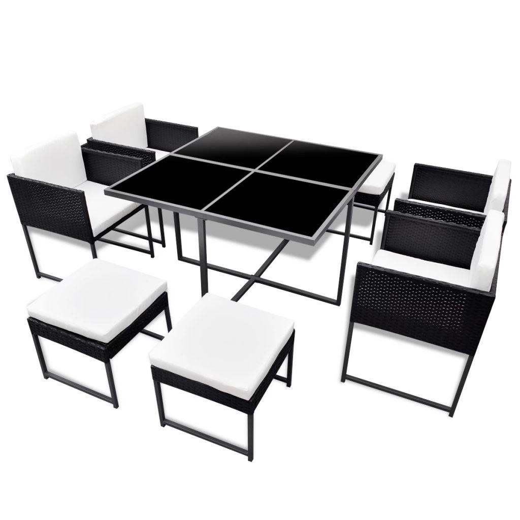 9 Piece Outdoor Dining Set with Cushions Poly Rattan Black 9 Piece Outdoor Dining Set with Cushions Poly Rattan Black 9 Piece Outdoor Dining Set with Cushions Poly Rattan Black